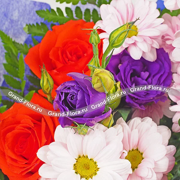 Встреча в саду - букет из роз,хризантем и эустом